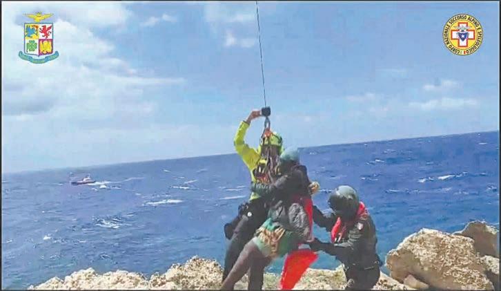 En un operativo particularmente arriesgado, dos helicópteros lucha ron contra fuertes vientos para poner a salvo, uno a uno, a los inmigrantes, entre ellos un niño y dos mujeres embarazadas, que llevaban casi dos días varados en un escarpado y ro coso arrecife de la pequeña isla de Lampedusa. Los bomberos indicaron que todos los inmigrantes, que se habían aferrado a las rocas luego que su embarcación chocara contra el arrecife durante la noche del viernes, habían sido salvados.
