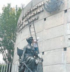 Los trabajadores pintaron la fachada, arreglaron los filtros de seguridad, limpiaron los símbolos