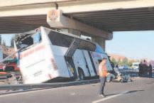 Al menos nueve personas murieron y 26 resultaron heridos ayer, cuando un autobús chocó contra un puente cerca de Ankara, según un primer balance del gobernador de la capital turca. El accidente se produjo hacia las 5:00 locales (2:00 GMT), cuando el autobús de pasajeros que viajaba desde Eskisehir, en el centro del país, chocó contra la columna de un puente en una autopista cerca de Ankara. El accidente provocó la intervención de un gran número de vehículos y personal de emergencia, informó la cadena de televisión pública TRT