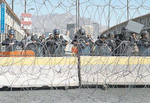 EN el Puente Internacional Paso del Norte se apostaron los indocumentados para tratar de entrar a Estados Unidos. Se cerró el acceso para peatones y automovilistas en el cruce fronterizo.- (AFP)