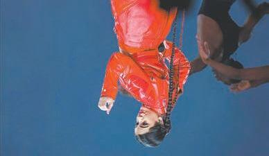 tregando una pistola a la novia, que dispara cuatro balas al aire mientras se encuentra sentada junto a su novio en el escenario de la sala