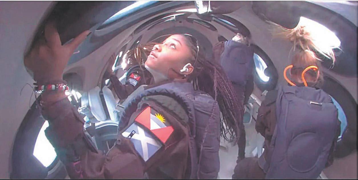 Los tres pasajeros -Jon Goodwin, de 80 años, Keisha Schahaff, de 46, y su hija Anastatia Mayers, de 18- pasaron algunos minutos en el espacio y pudieron observar la curvatura de la Tierra y flotar brevemente por la falta de gravedad, según se pudo ver en la transmisión por video de la empresa. Iban acompañados, en la nave VSS Unity , por un em-