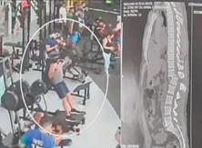 Al tratar de colocar más peso en la máquina para continuar realizando sus ejercicios, una falla en el artefacto hace que 150 kilogramos de peso caigan con fuerza sobre su espalda.