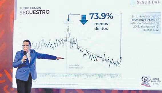 Al presentar el Informe Mensual de Seguridad en la conferencia matutina del presidente Andrés Manuel López Obrador, la funcionaria federal destacó que, durante este Gobierno, el homicidio do-