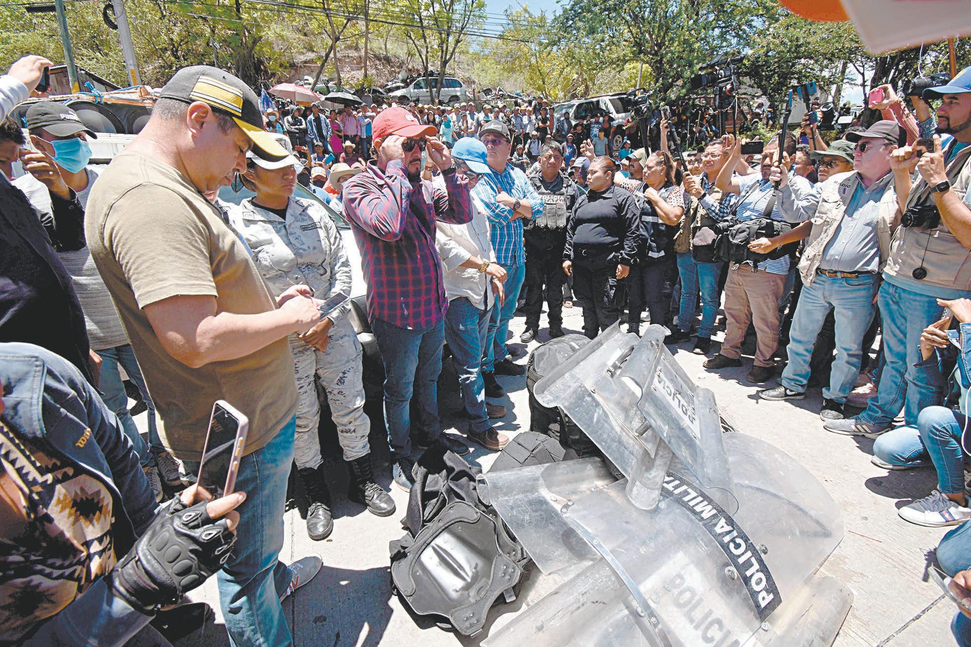 TRAS un acuerdo con autoridades, los manifestantes devolvieron cargadores de armas largas y esposas, así como un vehículo blindado que les quitaron a los policías durante el enfrentamiento del lunes.- (Cuartoscuro)