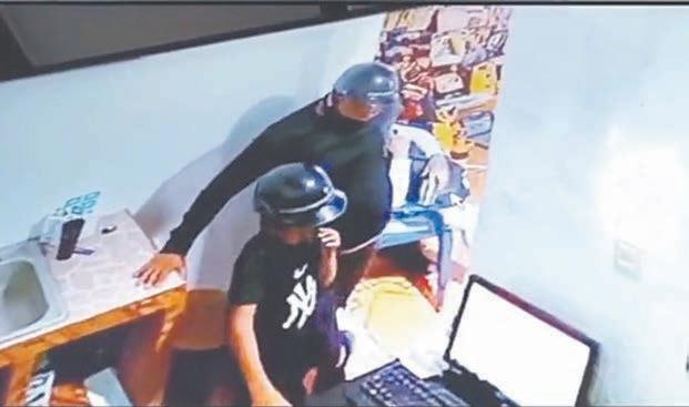 Gracias a las cámaras de seguridad pudieron ver que un hombre de negro, y con el casco de moto puesto, así como una mujer de pantalones azules y playera clara se acercan a los encargados de un negocio, los distraen y los hacen