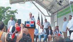 Abinader, primer mandatario que participa en este evento dedicado a la diáspora dominicana y a sus logros, se presentó con un fuerte opera tivo de seguridad junto a su esposa, Raquel Arbaje, y al inicio del recorrido subió a la palestra para cortar el lazo inaugural y cantar los himnos estadounidense y dominicano.