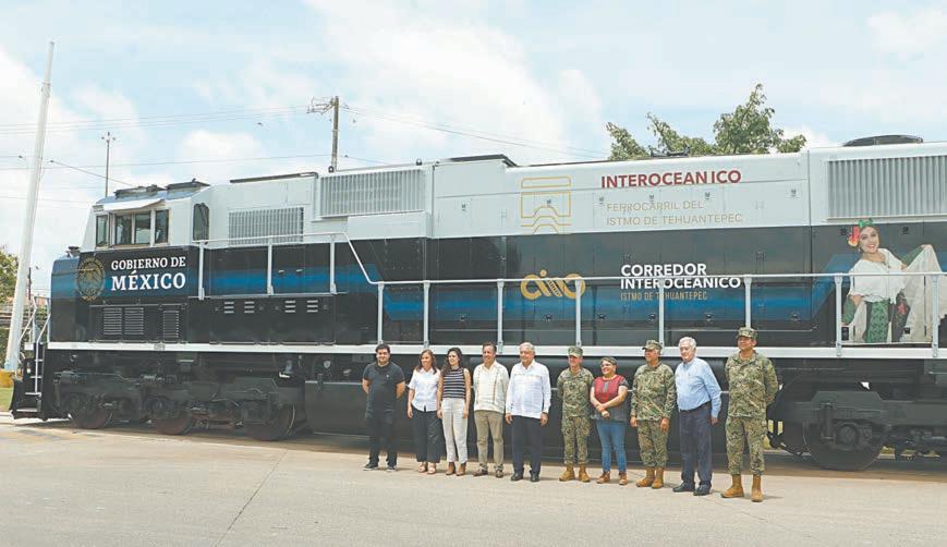 nea férrea de Tapachula a Ixtepec. Ayer, la de Salina Cruz a Coatza coalcos; hoy evaluamos la que va a Palenque y el avance de los 10 polos de desarrollo. Nos presen taron la primera locomotora del Tren Interoceánico, cuyo emble -