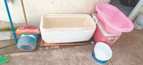 LOS vecinos relataron a Por Esto! que la empresa concesionaria del servicio señala que la constructora, que dirige Pedro Vaca Elguero, es la que debe garantizar el suministro; en tanto, las familias usan cubetas, lavadoras y toda clase de contenedores para apartar el recurso.- (Y. Aldana)