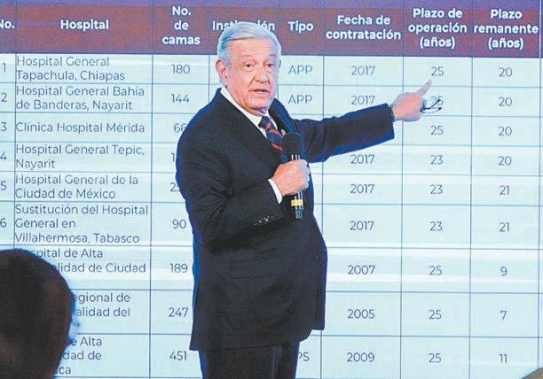 “Ahora estamos viendo cómo revisamos contratos o de plano adquirimos, compramos, 12 hospitales que hicieron empresas y le rentan al Gobierno el servicio. El Gobierno les paga por el servicio, pero son hospitales hechos por empresas y se les paga anualmente por el servicio, y consideramos que estos contratos son perjudiciales para la hacienda pública, es decir, se afecta la economía del pueblo”, dijo el Presidente durante su conferencia matutina de ayer.