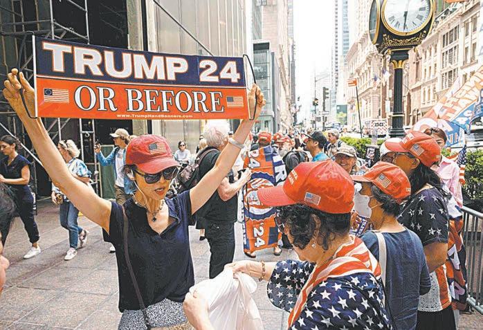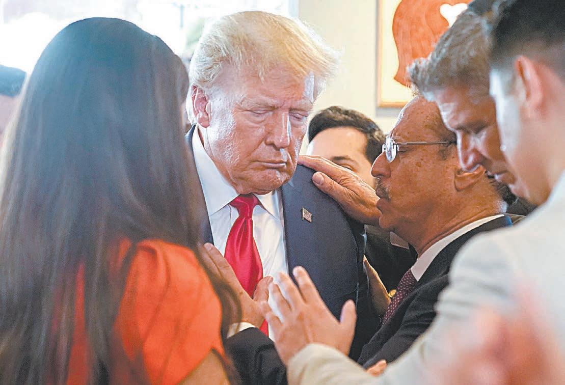 En ocasión del juicio, el exgobernante escuchó y compartió un rezo con un pastor que lo apoya. (AP) Una seguidora clamaba por el magnate para el “2024 o antes”. (AFP) El operativo de seguridad fue calificado de “sin precedentes”. (AFP)
