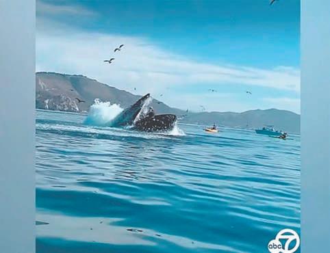 Como si fuera una película de terror, dos mujeres fueron tragadas por una ballena jorobada mientras practicaban kayak en la playa Avila Beach localizada en California, Estados Unidos. El video del increíble momento fue captado por testigos y se ha viralizado en redes sociales.
