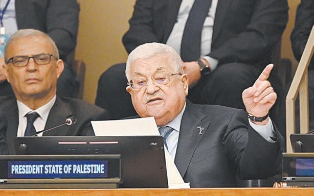 “Exigimos hoy oficialmente, conforme al derecho internacional y las resoluciones (de la ONU), que se aseguren de que Israel respete estas resoluciones o que la adhesión de Israel a la ONU sea suspendida”, dijo en un discurso de una hora el presidente palestino.