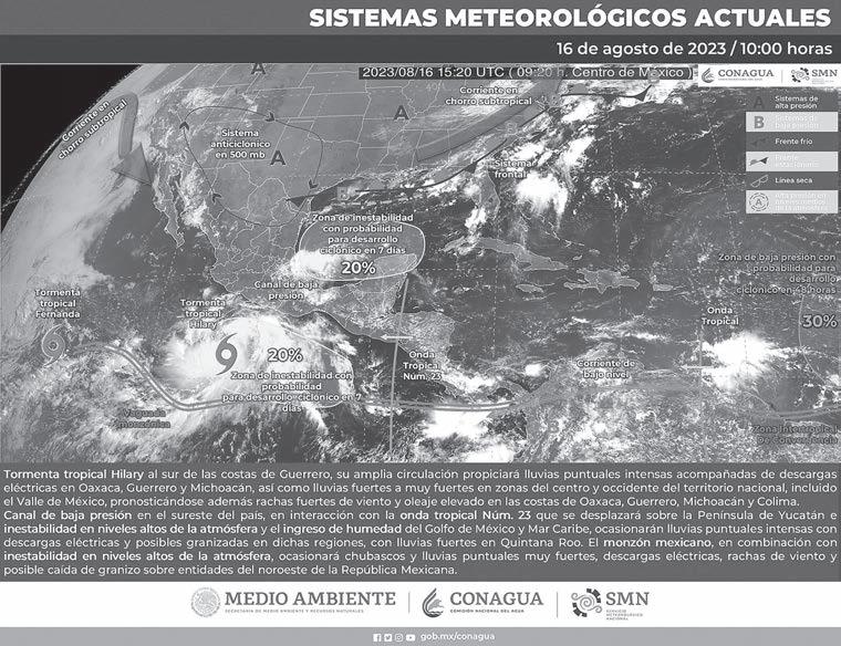 El Presidente se reúne con Gobernadores del Sur para buscar una solución a la creciente migración; propone un plan de desarrollo regional para frenar el éxodo obligado / Frena Morena ímpetu de corcholatas y llama a respetar los acuerdos para evitar rupturas internas / Ciclón Hilary cobrará fuerza de huracán hoy en el Pacífico, advierte el Servicio Meteorológico Nacional