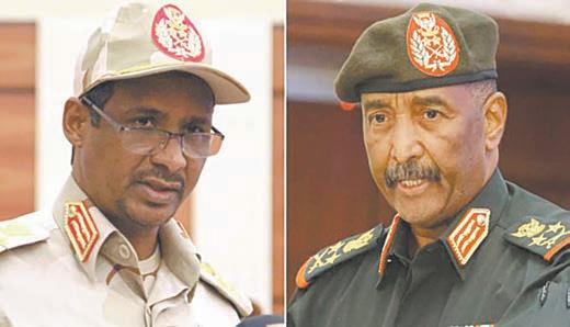 general Abdel Fatah al Burham, con su número dos, el general rebelde Mohamed Hamdan Dagalo, conocido como Hemedti, comandante de las Fuerzas de Apoyo Rápido (RSF), que juntos expulsaron a los civiles del poder en un golpe de Estado en el 2021.