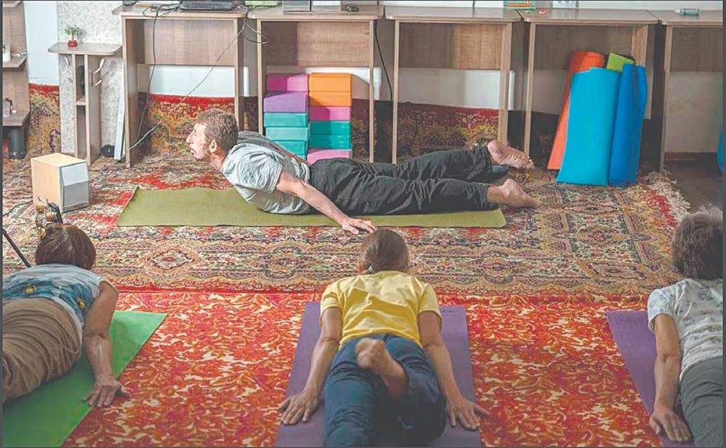 “Nos desconectamos del mundo exterior”, dice con voz serena Serhii Zaloznyi, un instructor de yoga de 52 años. Lentamente dirige a las personas a un estado de meditación.