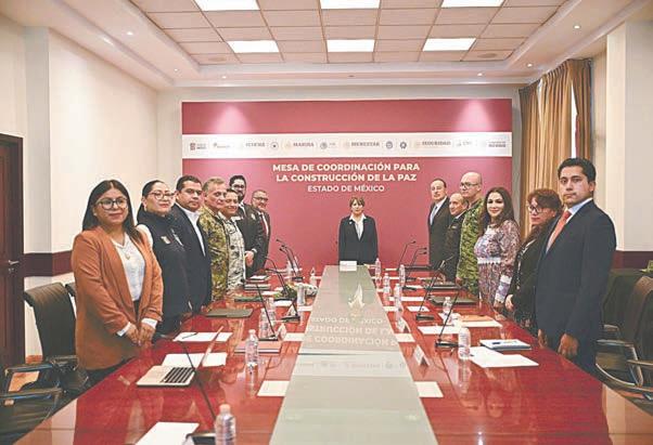 TOLUCA, Méx.- La primera Mesa de Coordinación para la Construcción de la Paz en el Estado de México, fue instalada por la gober- nadora Delfina Gómez Álvarez, con el objetivo de garantizar la seguridad y la paz de las familias mexiquenses.
