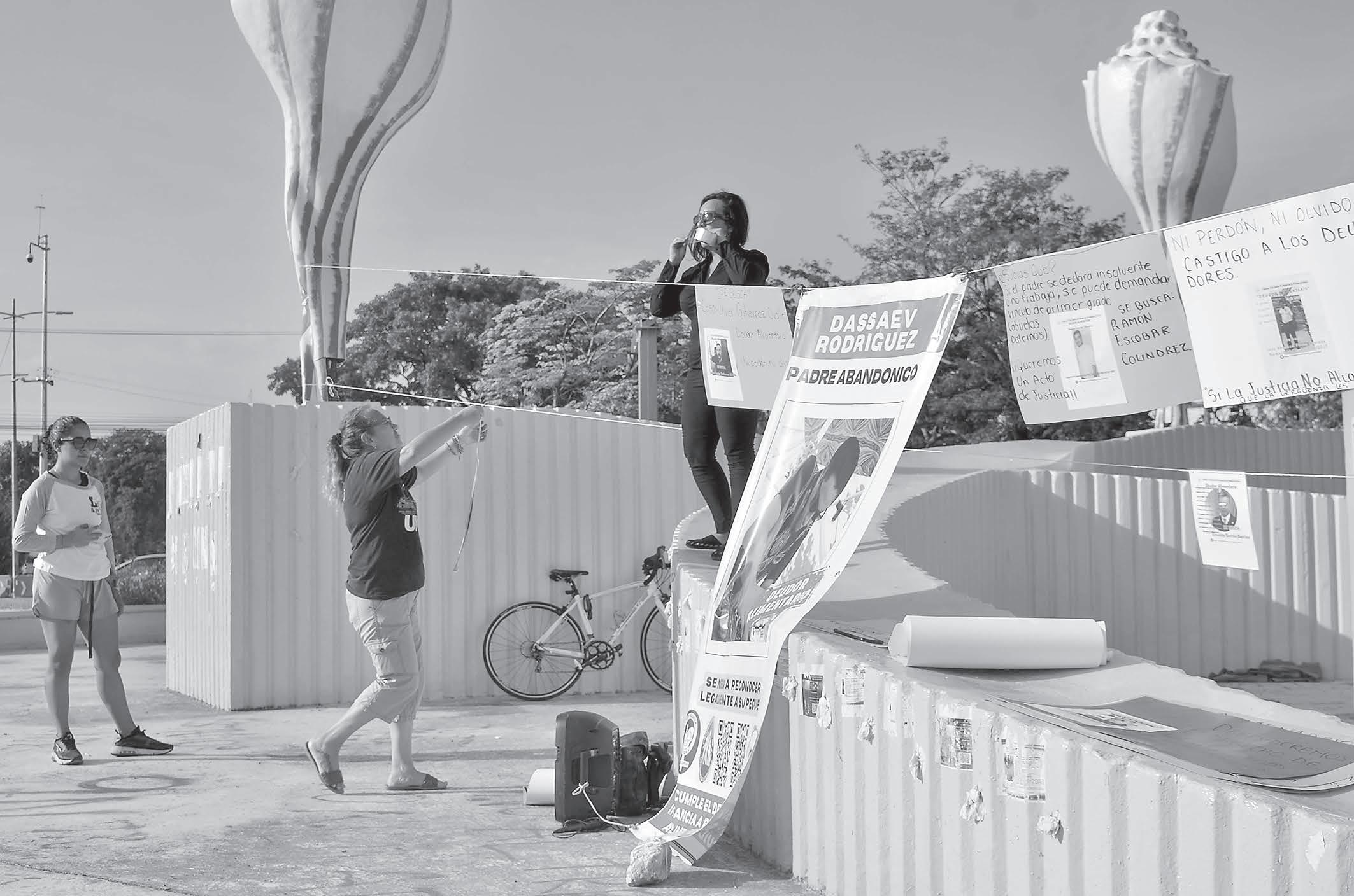 LA fuente sirvió de escenario para el “tendedero” donde se expuso a los incumplidos con la manutención de sus hijos.- (Mario Hernández)