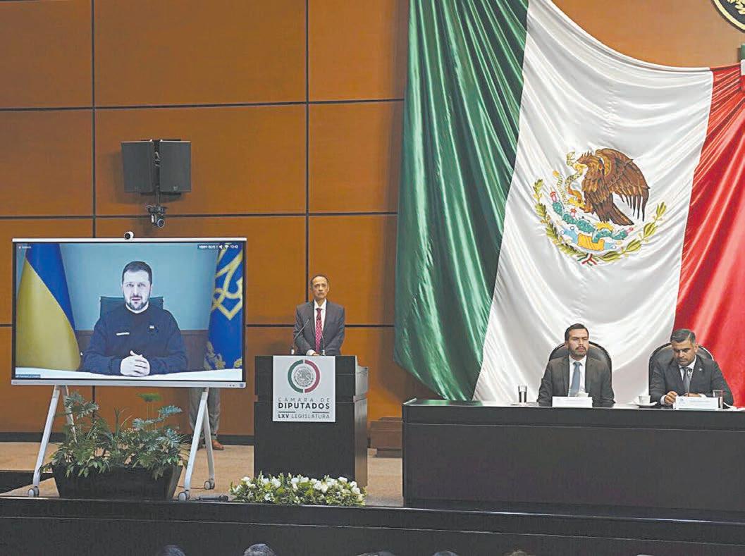 Ayer, Zelenski hizo una presentación a distancia ante el Grupo de Amistad México-Ucrania de la Cámara de Diputados, a la que acudieron legisladores de Movimiento Ciudadano, el PAN y algunos del PRI, en la que hizo un relato de los daños que la Federación Rusa ha causado al invadir a su país.