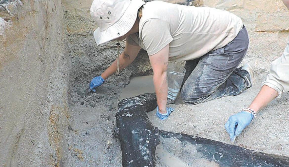 También se descubrió en el lugar una colección de herramientas de madera, entre ellas una cuña y un palo para excavar.