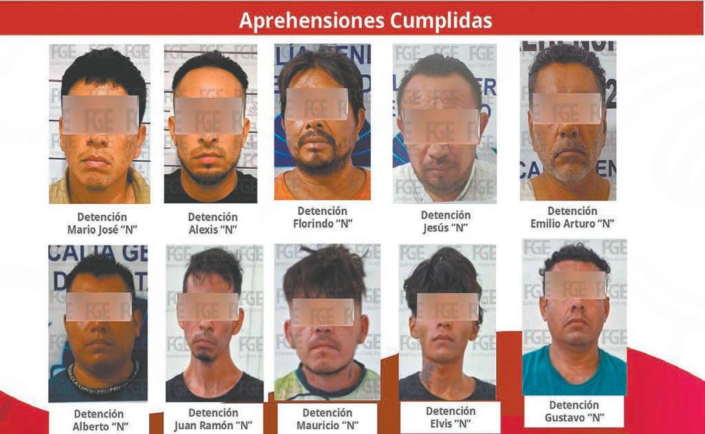 de 28 años, de Oaxaca de Juárez. También Alejandro “N”, de 21 años, de Villa Tamazulápam, Oaxaca; Brenda “N”, de 30 años, de Oaxaca; Monserrat “N”, de 22 años de Oaxaca; Iván “N”, 27 años, de Oaxaca de Juárez; Carlos “N”, de 24 años, originario de Oaxaca de Juárez; Víctor “N”, de 29 años, de San Miguel Etla, Oaxaca; Jean “N”, de 26 años, de Oaxaca; Faustino “N”, de 24 años, de Oaxaca de Juárez; Xóchitl “N”, de 24 años, de Salina Cruz, Oaxaca. Además de Víctor Daniel “N”, de 19 años, originario de Cuilápam de Guerrero y Erick “N”, de 31 años de edad, vecino de Tehuacán, Puebla. Entre los elementos que aún no se han identifi cado su comunidad de origen están Oscar “N”, de 28 años de edad; Yair “N”; Yajaira “N”; Daniel “N” y Juan Alexis “N”, de 26 años.