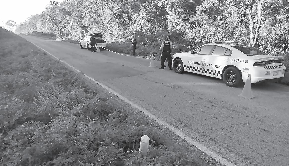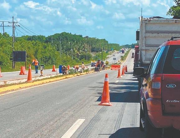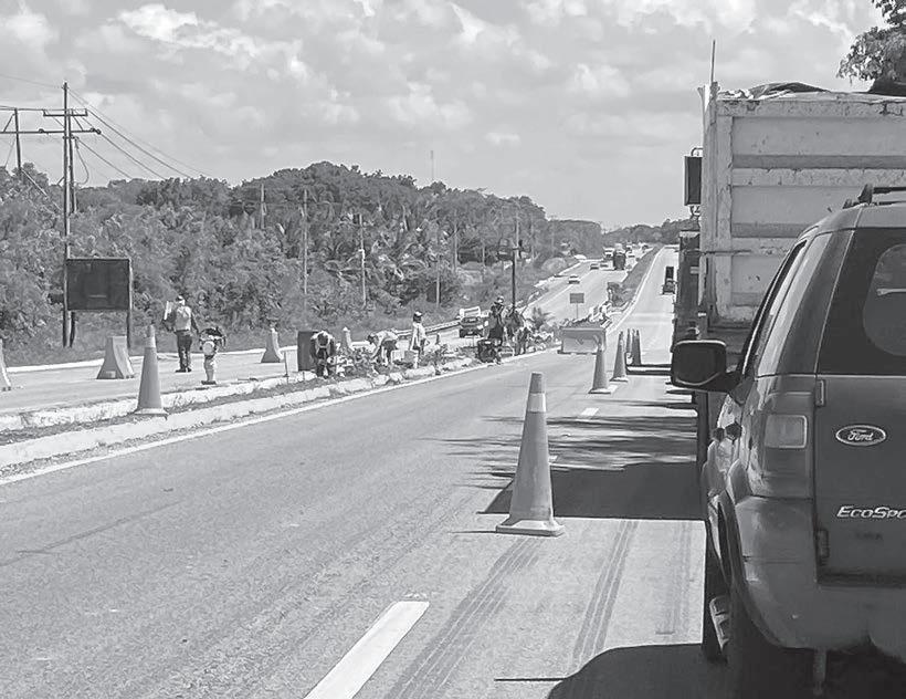 DEBIDO a las labores, personal de la Guardia Nacional pide a los automovilistas conducir con precaución a la altura del kilómetro 19.- (Abraham Cohuó)