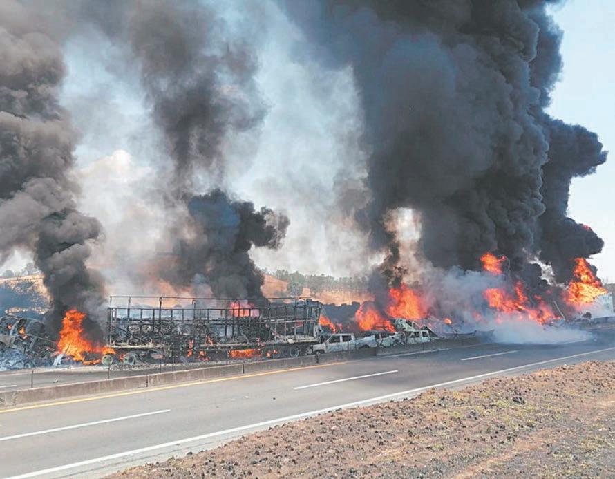 En redes sociales se difundieron fotografías y videos de la carambola, en ellas, se observaron algunos automóviles envueltos en llamas.