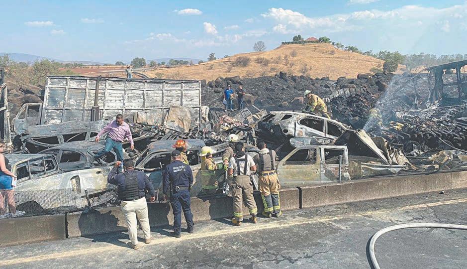 CIUDAD DE MÉXICO.- Un choque múltiple que se suscitó en la Autopista Zapotlanejo-Lagos de Moreno en el kilómetro 44, casi al cruce con la carretera a Arandas, dejó cinco personas muertas y 14 más lesionadas, de acuerdo con la Unidad Estatal de Protección Civil y Bomberos de Jalisco.