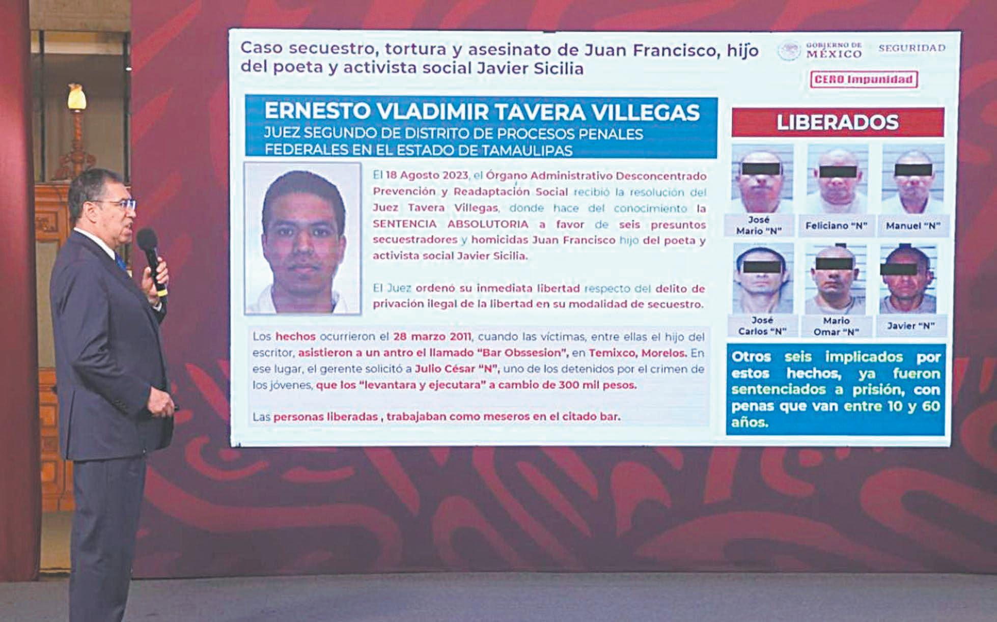 El subsecretario señaló a Ernesto Vladimir Tavera Villegas, juez segundo de distrito de proceso penales en Tamaulipas, por dictar sentencia absolutoria de seis presuntos secuestradores y homicidas del hijo del poeta Sicilia. Siendo que otros seis implicados fueron sentenciados a prisión por entre 10 y 60 años.