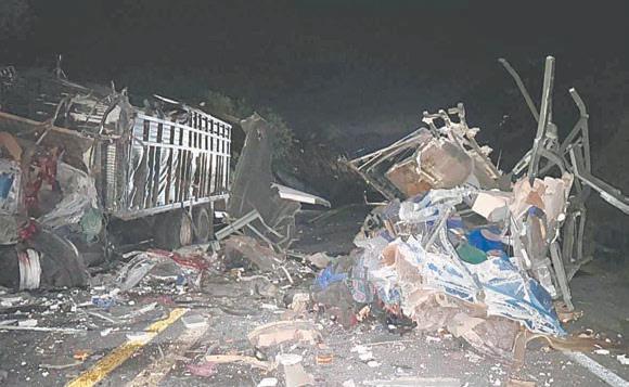 OAXACA, Oax.- Un choque entre un camión tipo Torton y un autobús de pasajeros en la carretera Miahuatlán-Coixtlahuaca dejó ayer por la madrugada un saldo mortal de 16 personas fallecidas, entre ellas, 15 mexicanos y un venezolano.