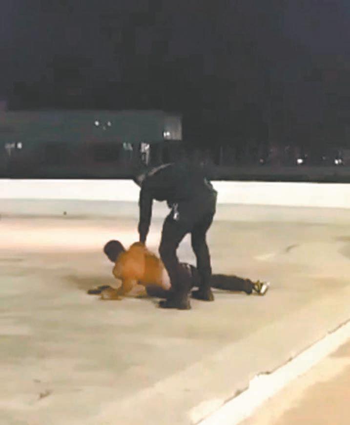 Una vez atrapado, un uniformado salió de su vehículo y con arma en mano le pidió al conductor que bajara de la camioneta; como no podía abrir la puerta, el policía lo jaló desde la ventana, lo sometió y ya acostado sobre el toldo de la patrulla, le colocó las esposas y lo arrestó.