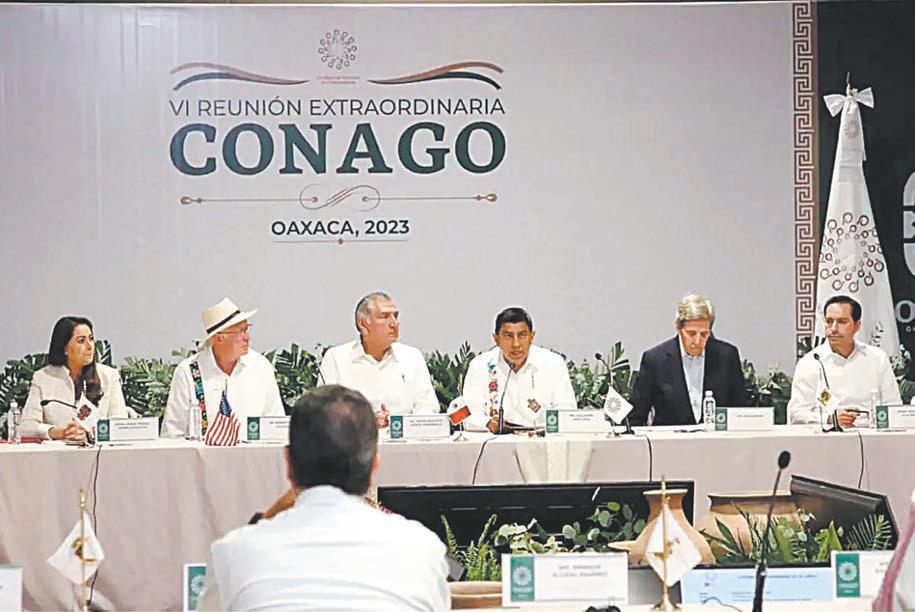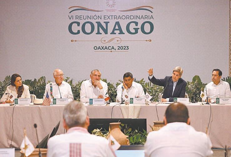 CIUDAD DE MÉXICO.- Gobernadores de 23 Estados y la Jefa de Gobierno de la Ciudad de México, así como el secretario de Gobernación, Adán Augusto López Hernández, aseguraron ayer a representantes del Gobierno de Estados Unidos su compromiso por combatir el cambio climático y consolidar la relación bilateral, durante la VI Reunión Extraordinaria de la Conferencia Nacional de Gobernadores (Conago) en Oaxaca, en la que estuvieron presentes el embajador de Estados Unidos, Ken Salazar, y el enviado especial de la Casa Blanca para el clima, John Kerry.