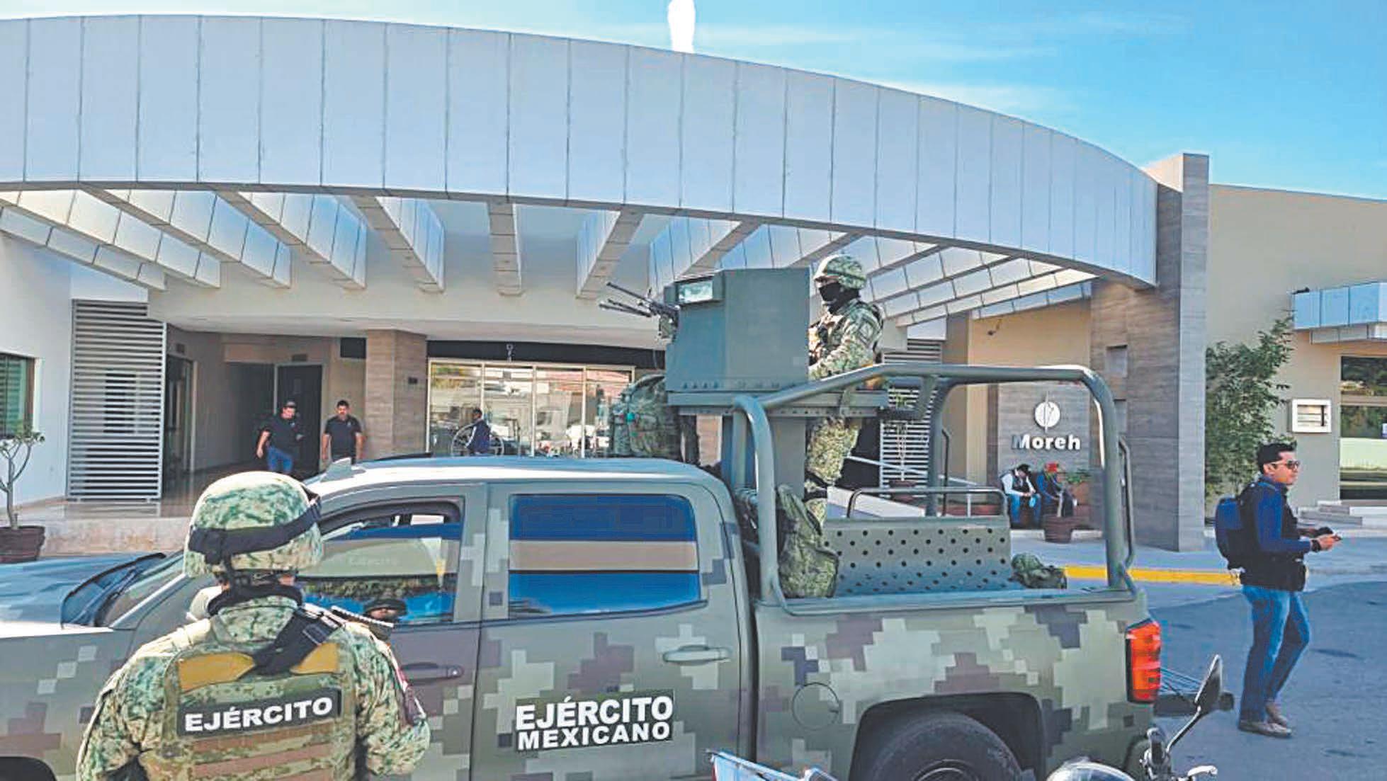 En la casa funeraria “Moreh” se observan elementos del Ejército que patrullan la zona, como medida de