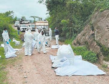 Agentes de la Policía de Investigación y personal de servicios periciales acudieron al tramo carretero Palenque-Benemérito de Las Américas, crucero San Jacinto. Ahí localizaron los cuerpos de tres hombres, dos de ellos identifi cados como Rafael “N” y Delmar “N”. Un tercero que permanece desconocido. (Agencias)