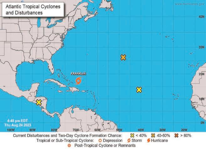 Según los pronósticos, Franklin adquirirá fuerza de huracán en los próximos días, pero lejos de tierra.