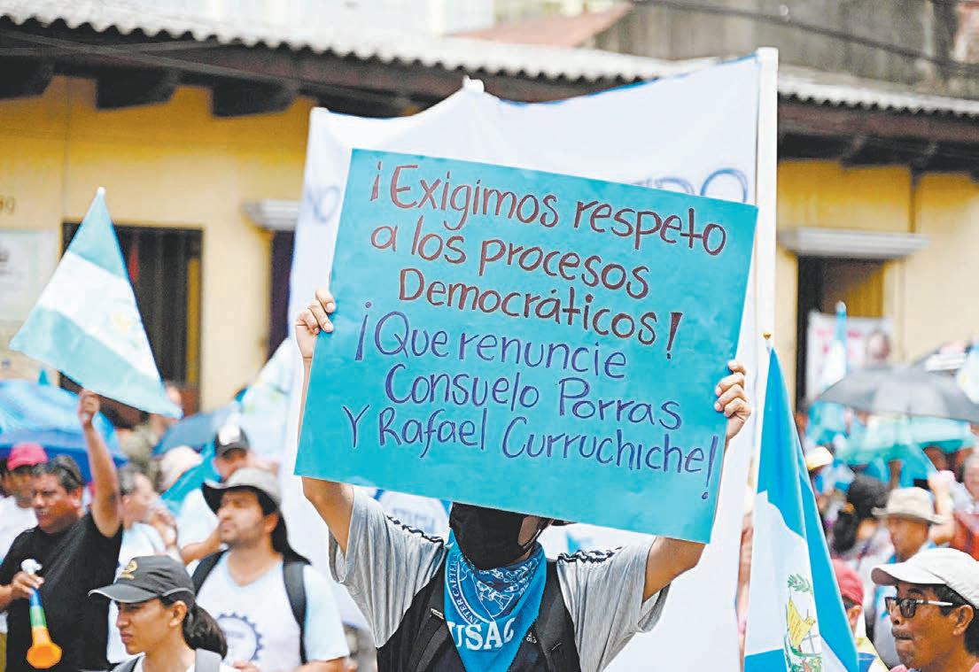 Los manifestantes piden, además, la dimisión de la fiscal general Consuelo Porras, cuya institución pidió la cancelación del partido Semilla , del juez Fredy Orellana y del fiscal Rafael Curruchiche, todos ellos sancionados por Estados Unidos como actores “corruptos y antidemocráticos”.