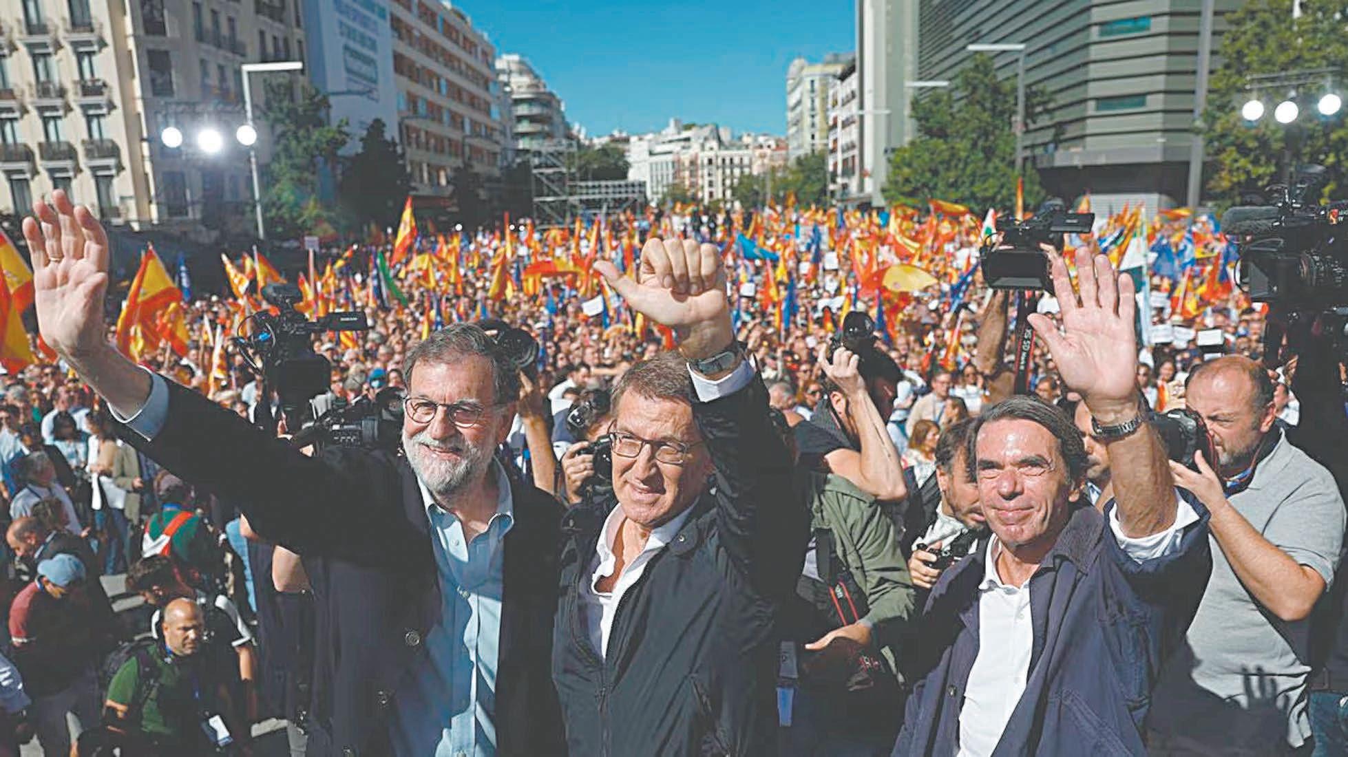 MADRID.- Decenas de miles de españoles protestaron ayer en Madrid contra los posibles planes del presidente del Gobierno en funciones, Pedro Sánchez, de otorgar amnistía a los separatistas catalanes para mantenerse en el cargo tras unas elecciones que no ganó.