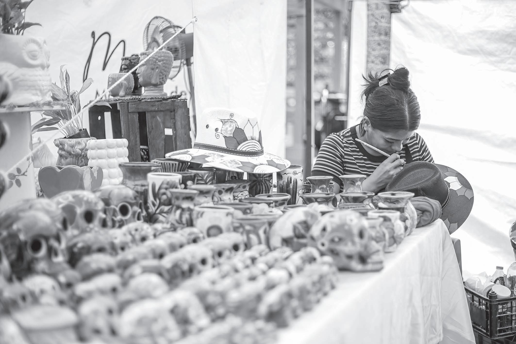 A un costado del Hemiciclo, las mamás vendieron playeras de 100 pesos con la leyenda Ayotzinapa Vive. La Lucha Sigue. Otras playeras tenían la imagen de los 43 normalistas con tortugas con los mensajes Hijo te buscaré hasta encontrarte… 43 y Ayotzinapa, caminando con el corazón 43. También vendieron servilletas bordadas entre 50 a 100 pesos.