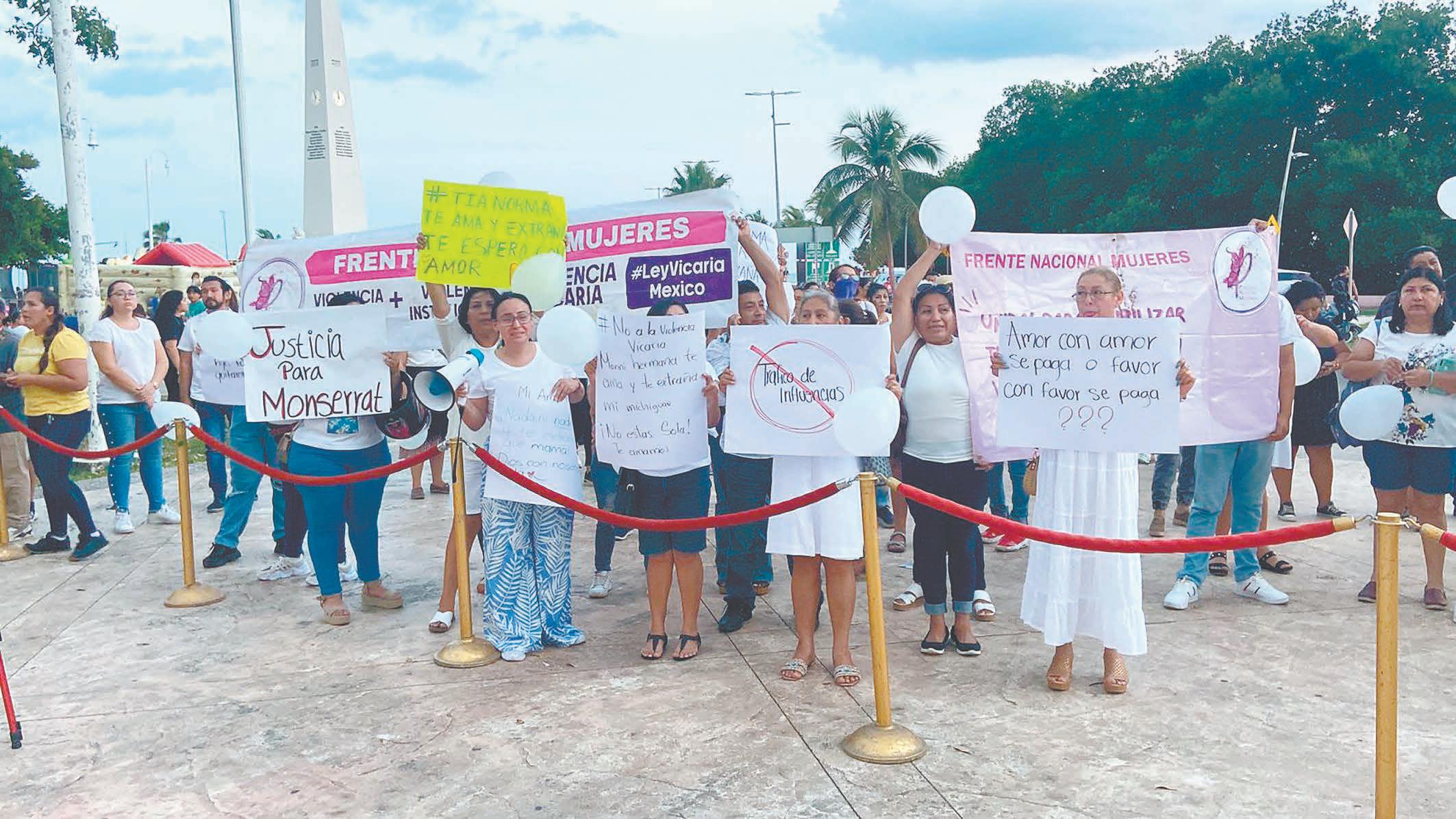 EL grupo organizó una marcha en apoyo a Lizbeth Monserrat Souza Palomino, a quien le arrebataron a su pequeño, la Diputada Elda Xix y su hijo.- (Abraham Cohuó)