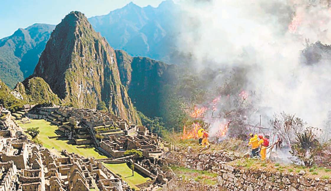 El fuego inició el martes y se centró en una aldea llamada Ccollpani, que pertenece al área de amortiguamiento que rodea al santuario histórico inca más visitado por el turismo