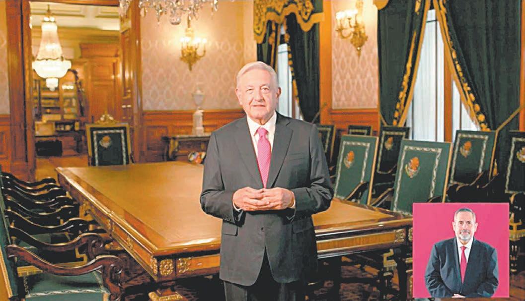 En un video compartido en sus redes sociales, como parte de los spots previos a su quinto informe como presidente de México, López Obrador destacó que se ha proba do que el apoyo al campo, los pro gramas del bienestar, el aumento al salario (mínimo), el envío de remesas de los paisanos migrantes a sus familiares han disminuido la pobreza y la desigualdad, a lo que él llamó el humanismo mexicano. “Arriba los de abajo, abajo los privilegios. Por el bien de todos, primero los pobres”, resaltó el mandatario federal.