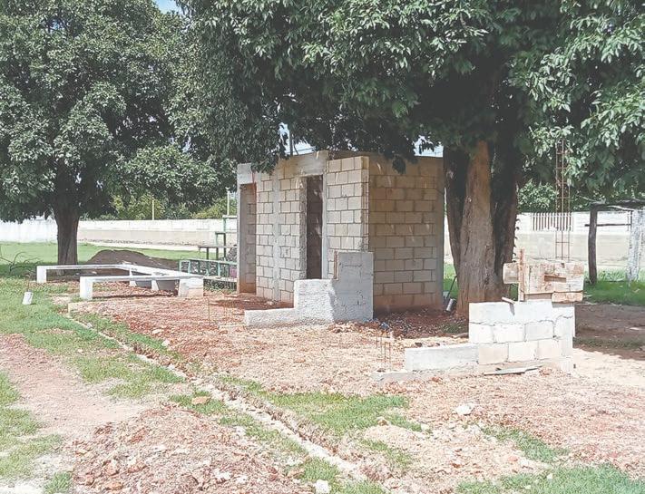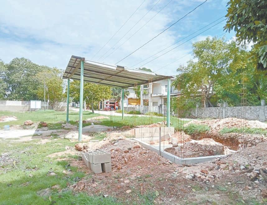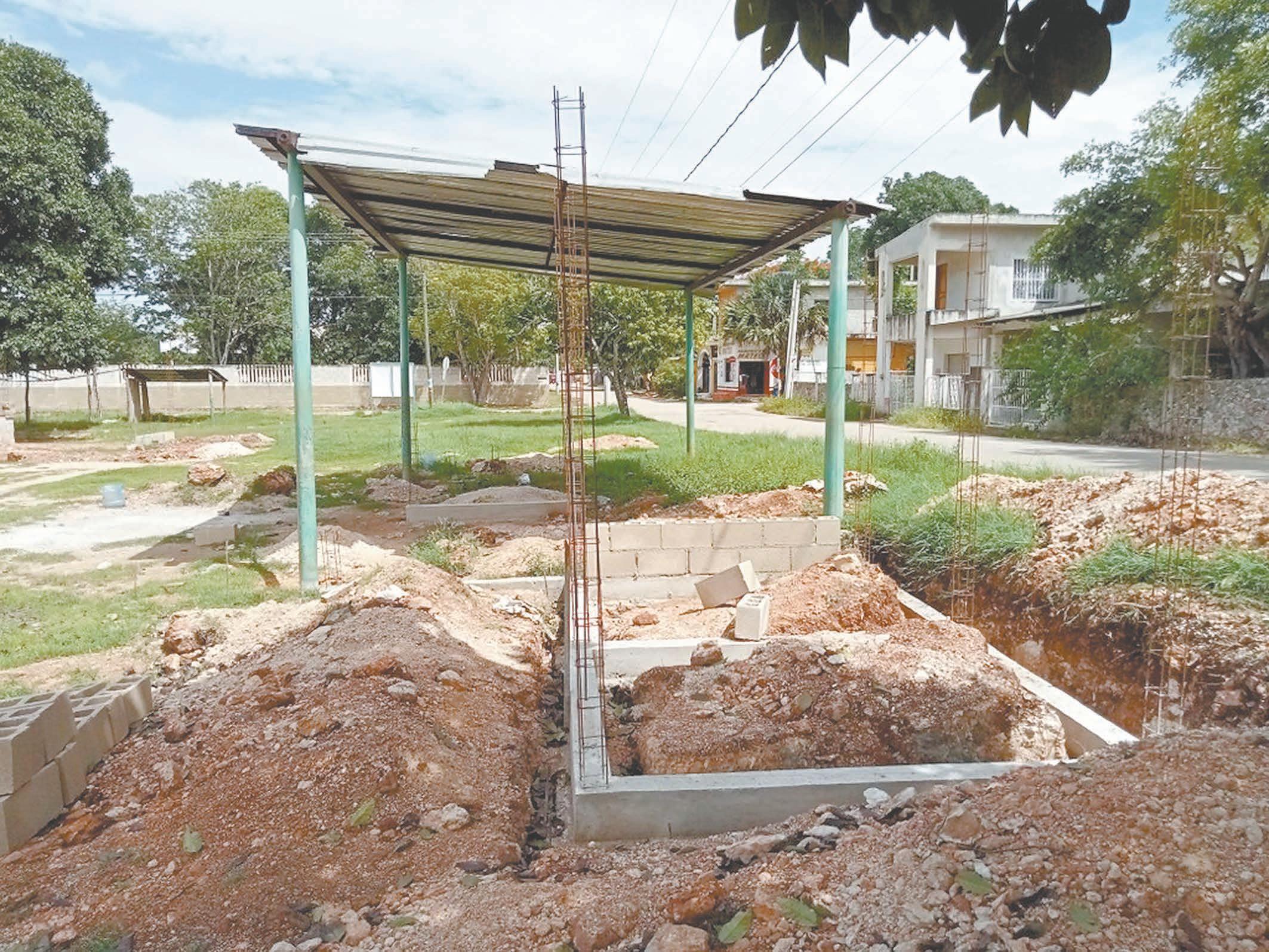 la primera piedra de lo que sería una barda perimetral en un campo de softbol; sin embargo, hasta ahora no hay avances.- (L. Kauil)
