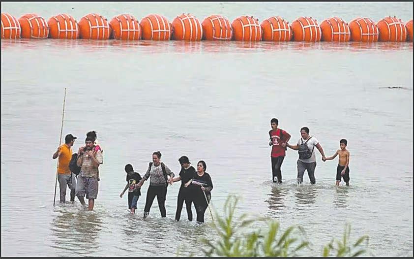 A inicios de julio, el gobernador del Estado de Texas, Greg Abbott, ordenó instalar en el río una cadena de boyas además de barreras de alambre de espino en la orilla en un punto por el que los migrantes pasan de México a Estados Unidos.