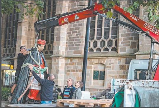 La Diócesis decidió el viernes retirar la estatua, que fue develada en el 2011. Una grúa la levantó ayer por la mañana y la cargó en un camión. La obra se quedará en un almacén. (Agencias)