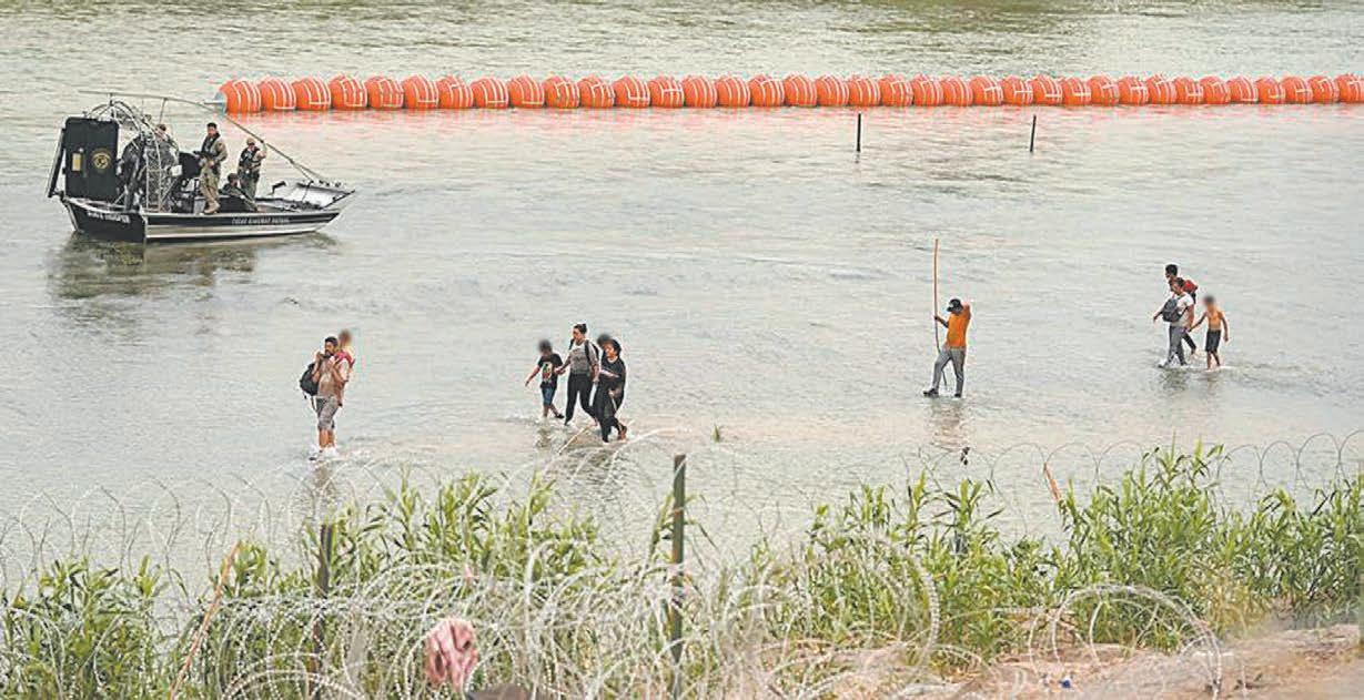 con navajas y a la barrera de boyas en el río Bravo, colocadas por el Gobernador de Texas en la zona fronteriza de Eagle Pass.
