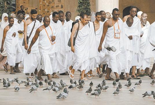 En medio de un sofocante calor, los fieles se desplazaron a pie o en autobuses climatizados hasta Mina, donde pasaron la noche de ayer antes de subir, el martes, al Monte Arafat, punto culminante del hach