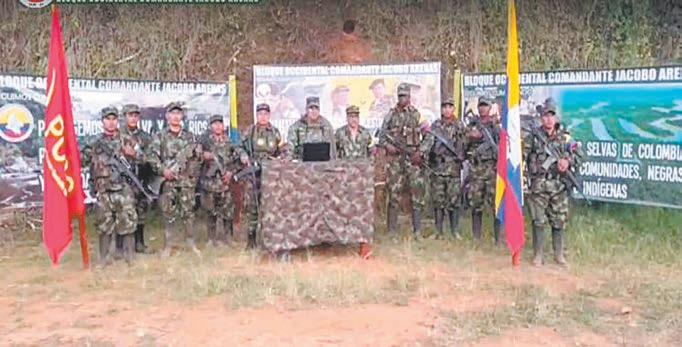 por el grueso de la entonces FARC. El comandante Andrés Patiño del denominado Estado Mayor Central (EMC) anunció también la medida en un video difundido en las redes de la organización, acompañado de una decena de hombres armados con fusiles y vestidos de camuflaje.