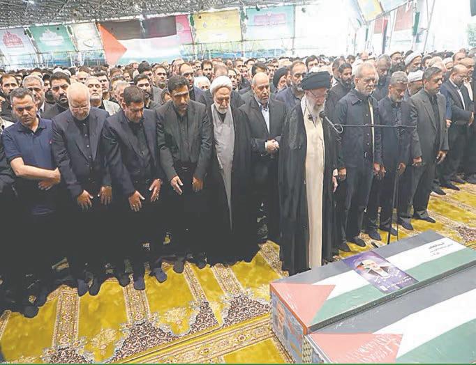 En Irán, el encargado de dirigir las plegarias por Haniyeh fue el líder supremo de la República Islámica, el ayatolá Ali Jamenei, que amenazó con asestar un “duro