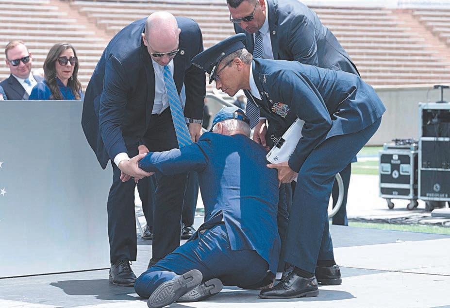 El presidente de Estados Unidos, Joe Biden, de 80 años, se tropezó y cayó al suelo ayer durante la ceremonia de graduación de los cadetes de la Academia de la Fuerza Aérea en Colorado.