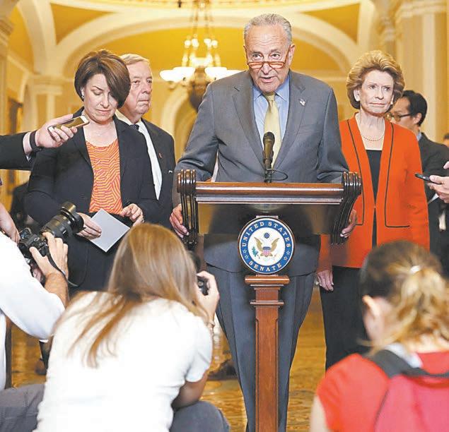 favor por 36 en contra, reflejó el abrumador resultado de la Cámara de Representantes el día anterior, donde los centristas de ambos par tidos sacaron adelante el paquete. El líder de la mayoría demócra ta en el Senado, Chuck Schumer, dijo que la aprobación del proyec to significa que “Estados Unidos puede respirar aliviado”. “Estamos evitando el impago”, declaró.